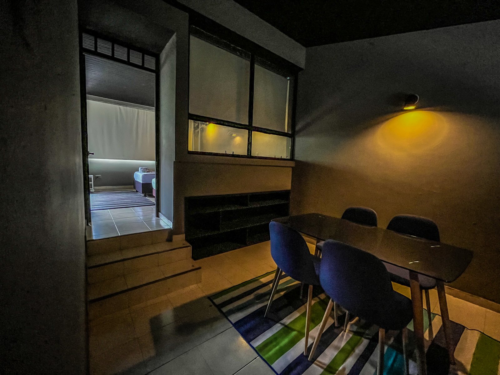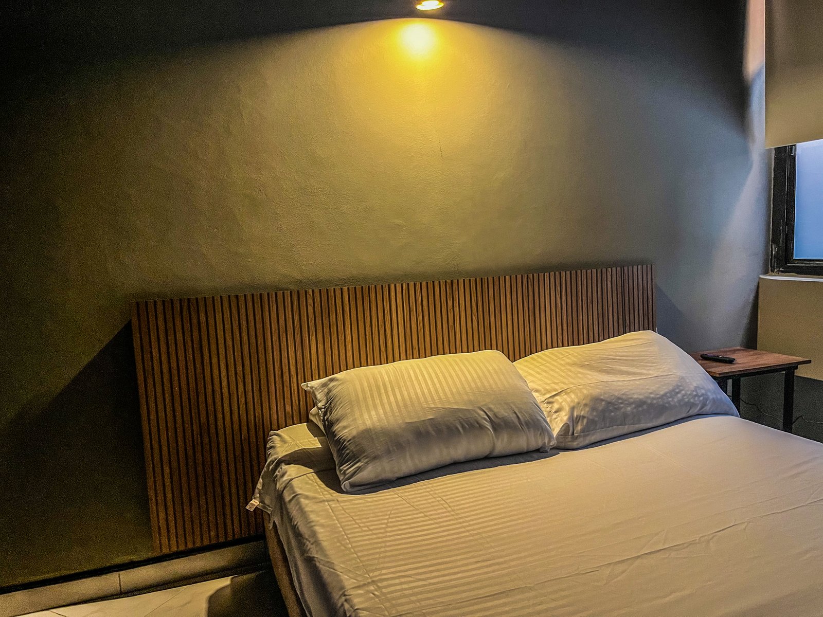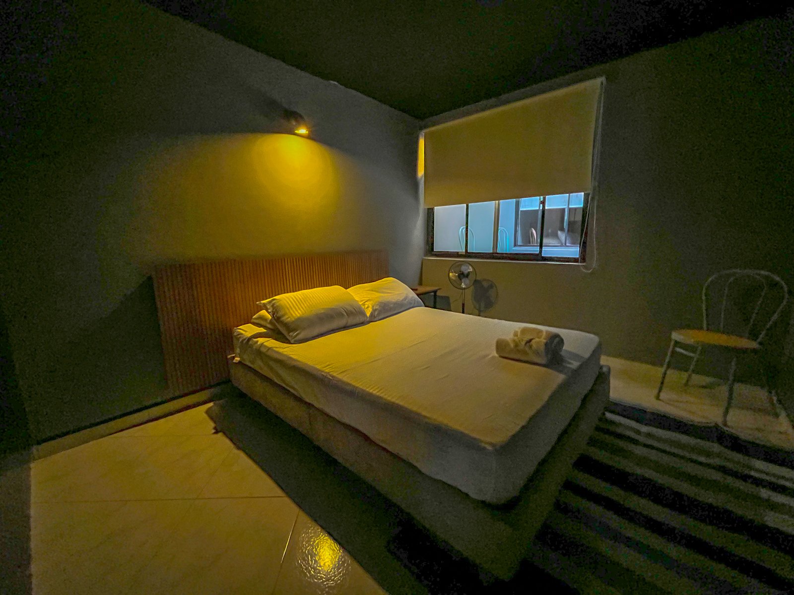 La habitación cuenta con una ventana con vista a un patio interno iluminado, lo que permite una buena ventilación y entrada de luz natural. También dispone de un pequeño espacio con sillas para mayor comodidad durante la estancia.